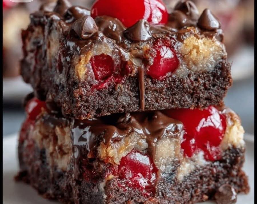 ✨ Optional Drizzle: Melt ½ cup chocolate chips with 1 tsp coconut oil and drizzle over the cooled bars. Top each square with a whole cherry for a bakery-style look.