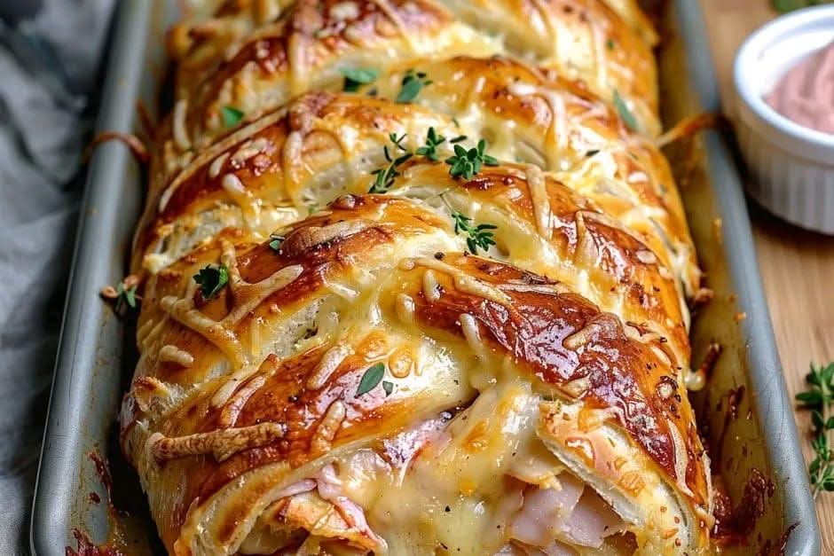 This recipe is optimized for searches like easy 4 ingredient lunch recipe, cheesy ham crescent roll bake, quick baked ham and cheese loaf, and simple comfort food recipes. These keywords help this dish reach food lovers looking for fast and delicious meals.