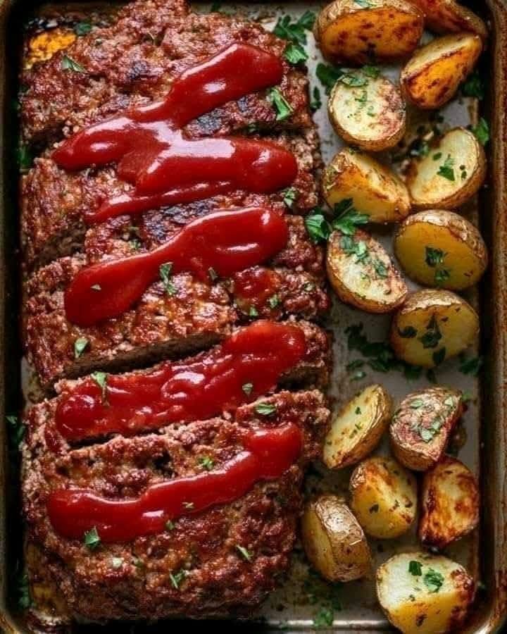 Of course! This is the ultimate comfort food meal. Here’s a recipe for a classic, moist, and flavorful meatloaf with a sweet and tangy glaze, paired with perfectly crispy roasted potatoes.
