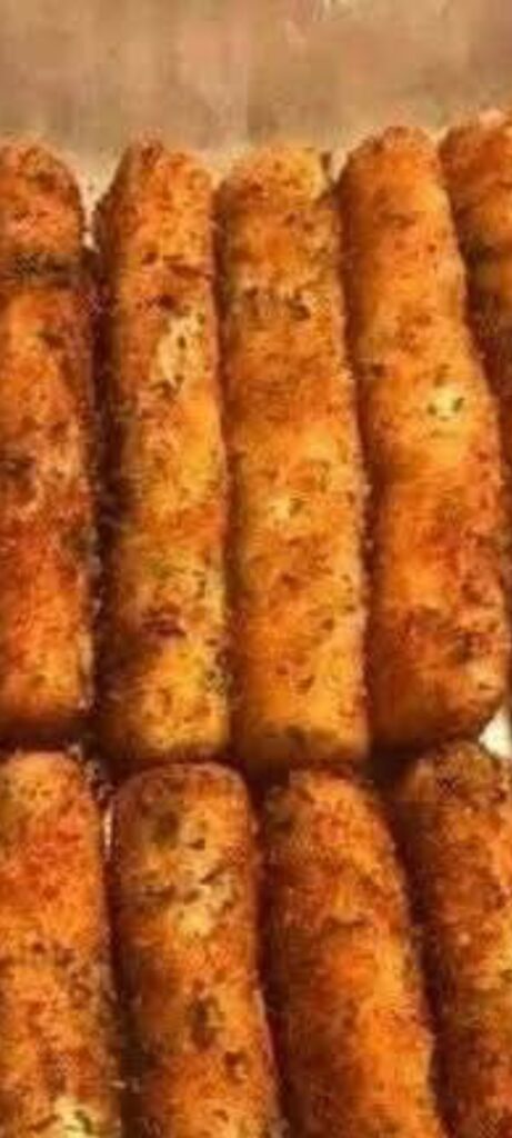 6 slices white or sandwich bread (crusts removed)6 mozzarella string cheese sticks (or cut blocks)2 large eggs1/2 cup all-purpose flour1 cup breadcrumbs (preferably seasoned)1/2 tsp garlic powder (optional)1/2 tsp paprika (optional)Oil for fryingCinnamon sugar (optional, if making a sweet version)