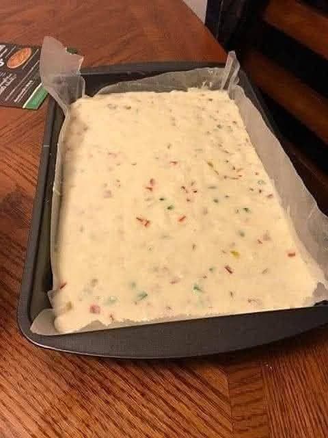 Quickly transfer the nougat mixture to the prepared baking dish, spreading it evenly with a spatula.
