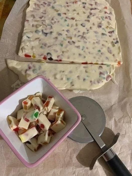 Place the dish in the refrigerator for 1–2 hours, or until the nougat is firm and set.