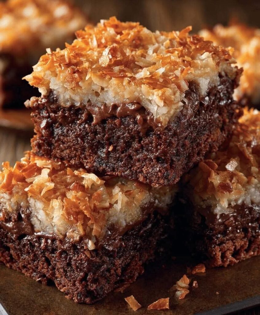 Rich, fudgy brownies topped with a luscious coconut-pecan frosting—these decadent bars take German chocolate flavor to the next level.
