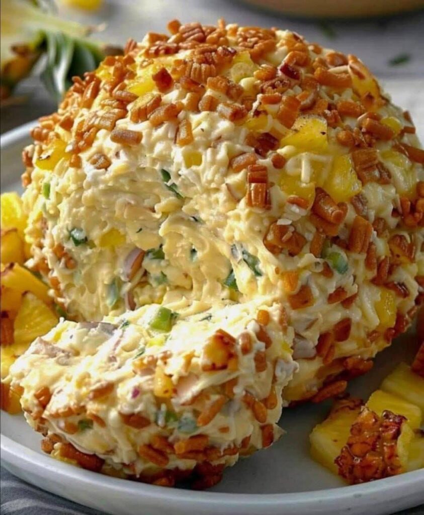 Just before serving, roll the cheese ball in the remaining chopped pecans. Set it on a plate and surround it with assorted crackers.