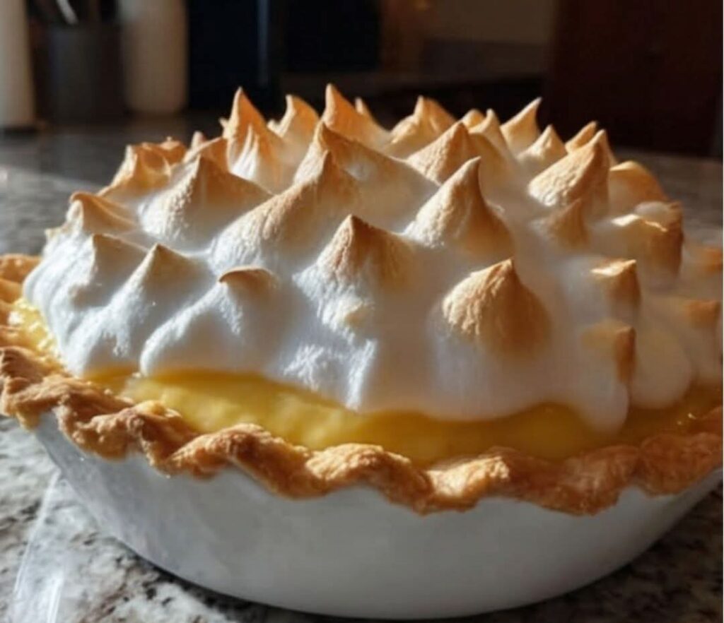 Pour the lemon filling into the pre-baked pie crust