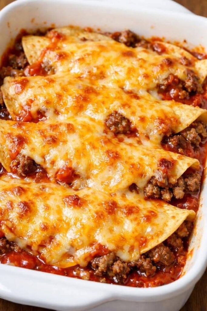Serve warm, scooping down through all the layers so each serving has tortillas, saucy beef, and plenty of melted cheddar. Leftovers reheat well in the oven or microwave for easy meals later in the week.