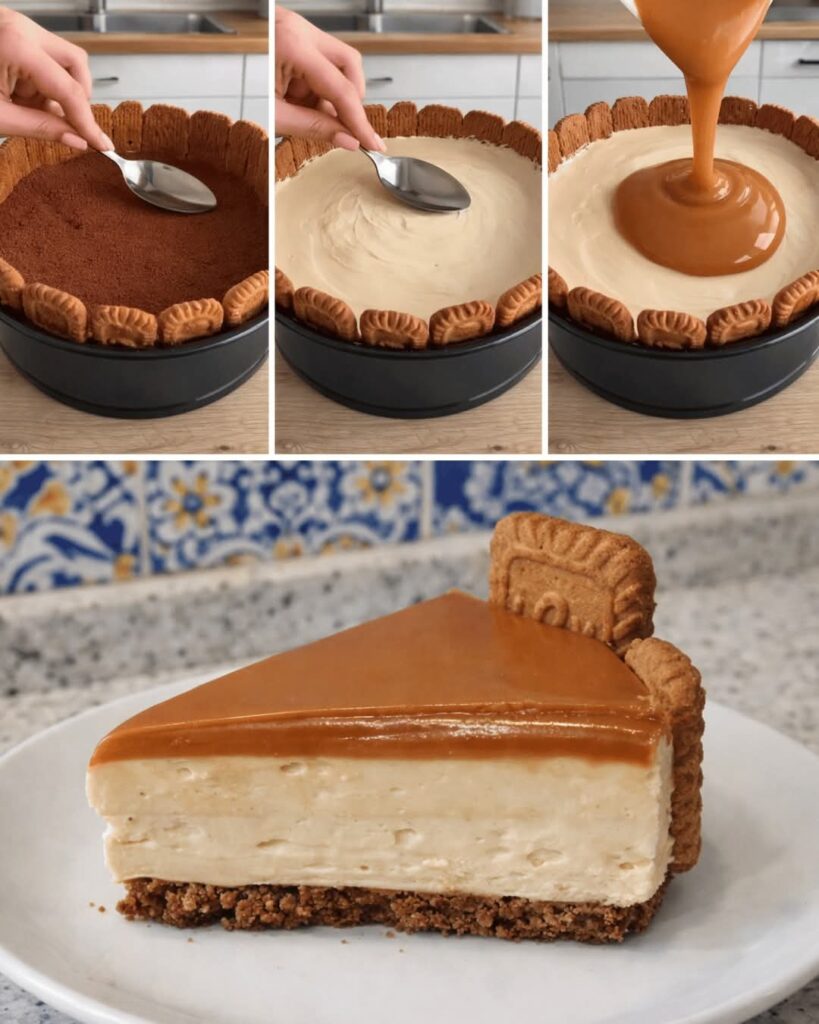 Pour melted Biscoff spread or caramel over the top.