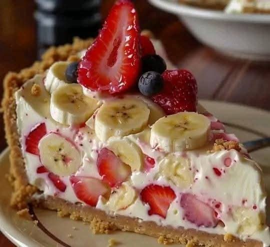 - Arrange banana slices and strawberries on top.