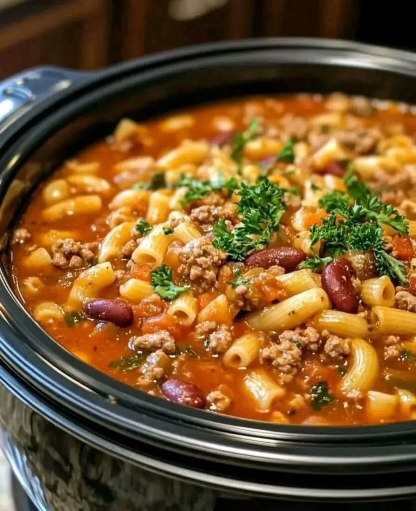 - Heat a skillet over medium heat. Cook the ground beef until browned, then drain excess fat and transfer to a 6-7 quart slow cooker. Finely chop the onion, carrots, and celery, and add them to the slow cooker.