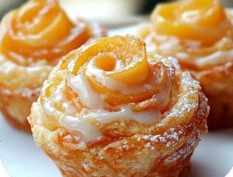 Peach Pie CruffinsImagine the  buttery layers of a  croissant wrapping around sweet, spiced peaches—baked until golden, crisp on the outside, and tender inside. Tinsuf brings you these Peach Pie Cruffins: the perfect fusion of croissant and muffin, ready to dazzle any brunch, tea party, or cozy weekend morning.Flaky, buttery cruffins filled with peach pie goodness.